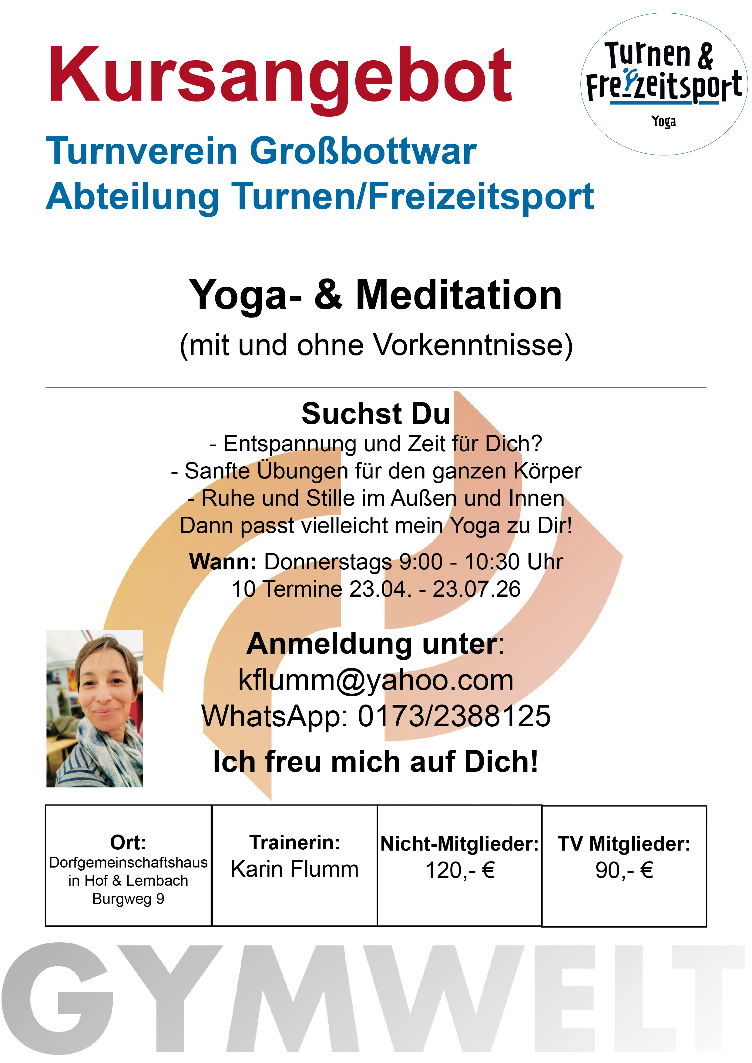 Anmeldungen/Fragen an: kflumm@yahoo.com oder WhatsApp: 0173/2388125